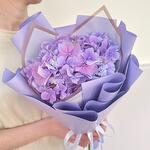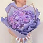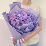 Hydrangea - 1 pcs Satin ribbon - 1 pcs Пленка матовая - 1 pcs упаковка фиолетовая - 1 pcs