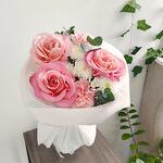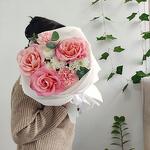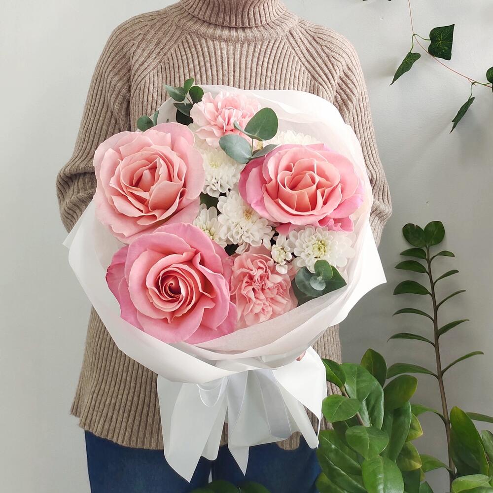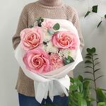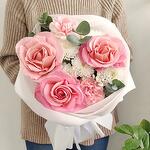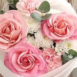 Нежный букет с французскими розами, диантусами, эвкалиптом и хризантема