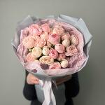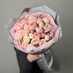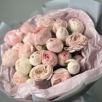 Satin ribbon - 1 pcs Silence - 2 pcs пленка матовая цветная - 2 pcs роза кустовая пионовидная мансфилд парк - 9 pcs