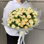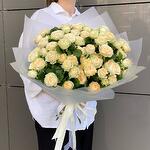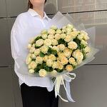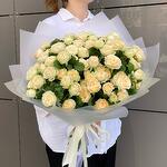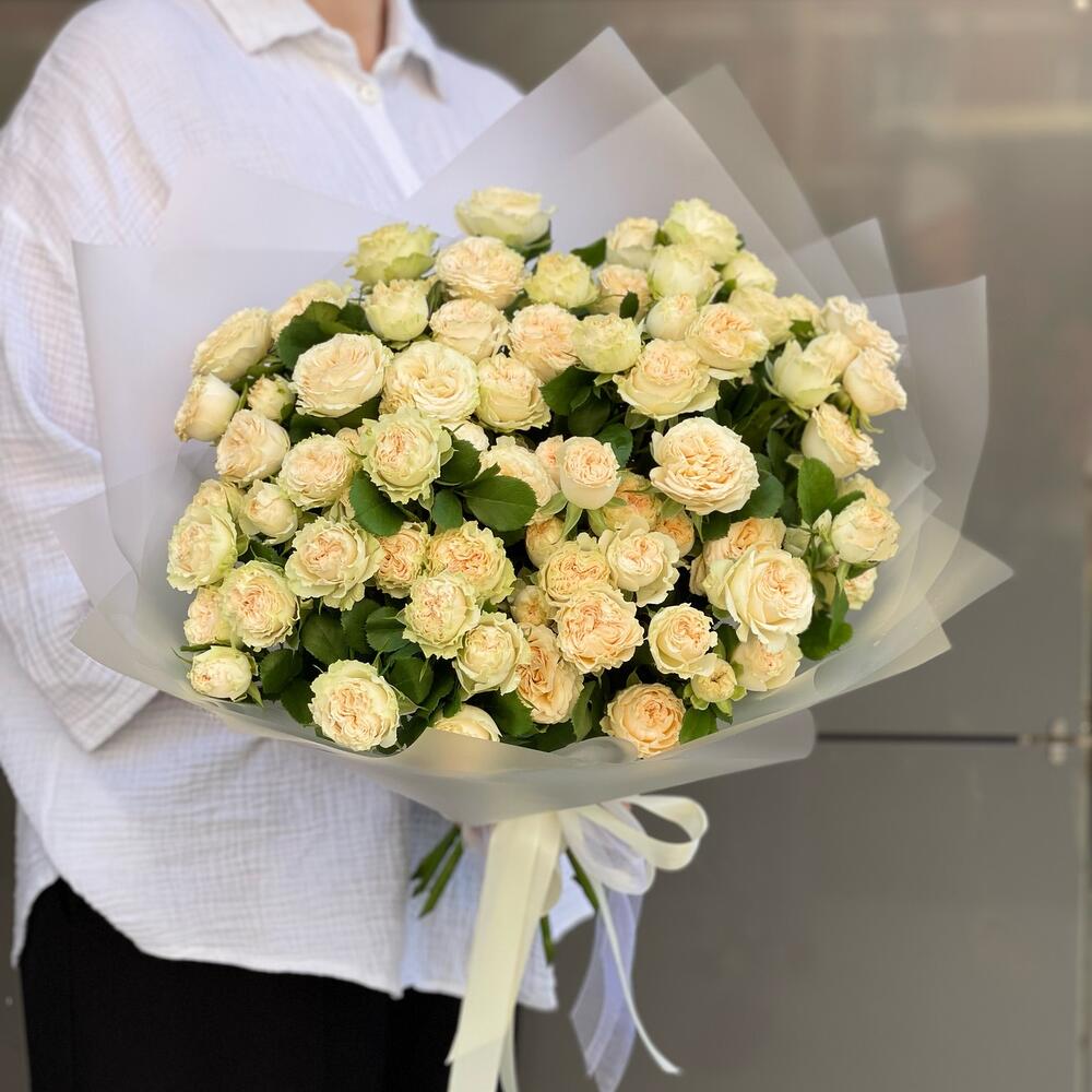 Satin ribbon - 2 pcs Роза кустовая пионовидная - 19 pcs Пленка дизайнерская - 3 pcs