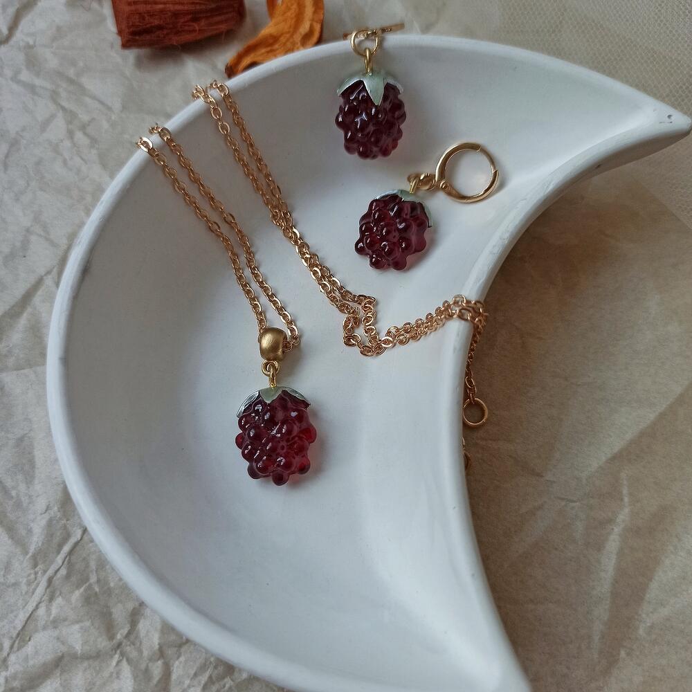 Комплект украшений Сочные малинки. Этот нежный и романтичный комплект включает в себя серьги и подвеску-кулон, выполненные в форме аппетитных спелых малинок. Каждая малинка создана с использованием эпоксидной смолы. Малинки выглядят настолько натуральными, что кажется, будто их можно сорвать и попробовать. Мягкий, теплый оттенок красного, переливающийся в лучах света, делает эти украшения по-настоящему притягательными и элегантными. Они дарят ощущение свежести и сочности. Комплект Малинки станет прекрасным дополнением к романтичным образам и подчеркнет вашу женственность и нежность. Каждое украшение создано с любовью и вниманием к деталям, поэтому оно подарит вам частичку тепла и индивидуальности. Окунитесь в мир ягодной свежести с этим очаровательным комплектом!