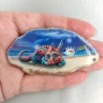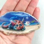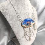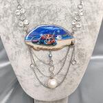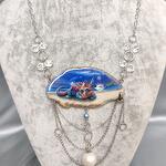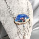 Колье с лаковой миниатюрной живописью, написано по мотивам фантастического фильма Люка Бессона Валериан и Город тысячи планет. Специально для конкурса лаковой миниатюры Кинороман с камнем, на котором стало финалистом. Основой служит срез агата небесно-голубого цвета, в живописи использованы светостойкие пигменты, глянцевое покрытие лаком надежно защищает живопись. НО, несмотря на это, не стоит ударять или царапать поверхность украшения.